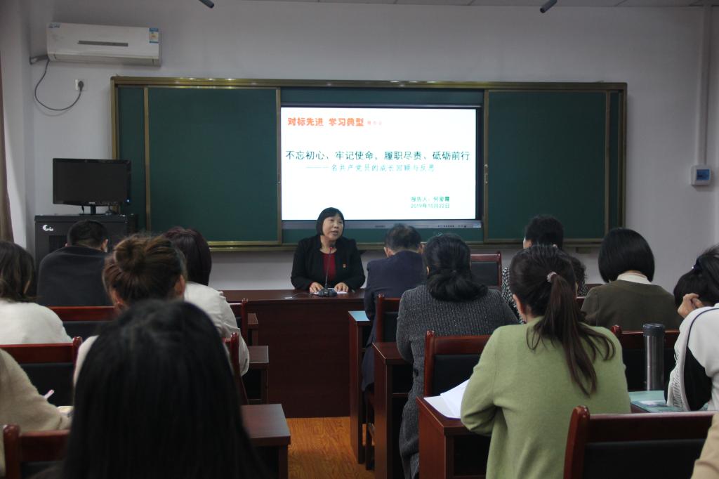 为推进“不忘初心、牢记使命”主题教育走深走实,充分发挥优秀共产党员的示范带头作用,着力营造争当先进、勇于担当的干事创业氛围,10月22日,学院举行“对标先进、学习典型”主题党日活动,活动由党总支书记茌淑君主持,全体师生党员及研究生入党积极分子参加。