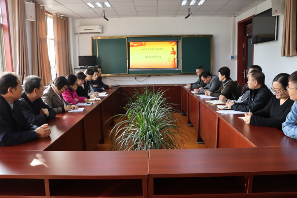全体教职工在学院会议室开展教职工政治理论学习活动,全面深入学习习近平总书记系列重要讲话和党建、思想政治工作相关文件讲话。会议由学院党总支书记茌淑君主持。
