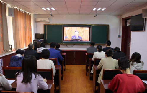 最后,茌淑君强调:一要深刻认识党的二十大的重大意义,更加紧密地团结在以习近平同志为核心的党中央周围,全面贯彻习近平新时代中国特色社会主义思想,踔厉奋发、勇毅前行,为全面建设社会主义现代化国家、全面推进中华民族伟大复兴而团结奋斗。二要深刻领会报告精神实质,准确把握报告丰富内涵,切实把思想认识统一到党的二十大精神上来,把力量凝聚到实现党的二十大确定的目标任务上来。三要迅速在全院兴起学习贯彻党的二十大精神热潮。学院将通过理论中心组学习、“三会一课”、 党支部主题党日活动、专题讲座、座谈会、撰写心得体会等多种学习宣传形式,将党的二十大精神的学习宣传贯彻在面上铺开、向纵深推进,激发广大党员干部和师生员工的爱国热情,凝聚起奋进新征程、开启新篇章的磅礴力量。