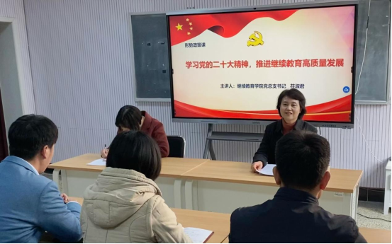 为深入学习宣传党的二十大精神,加强学院师生党性修养,11月18日下午,学院党总支书记茌淑君以“学习党的二十大精神,推进继续教育高质量发展”为题,为av动漫