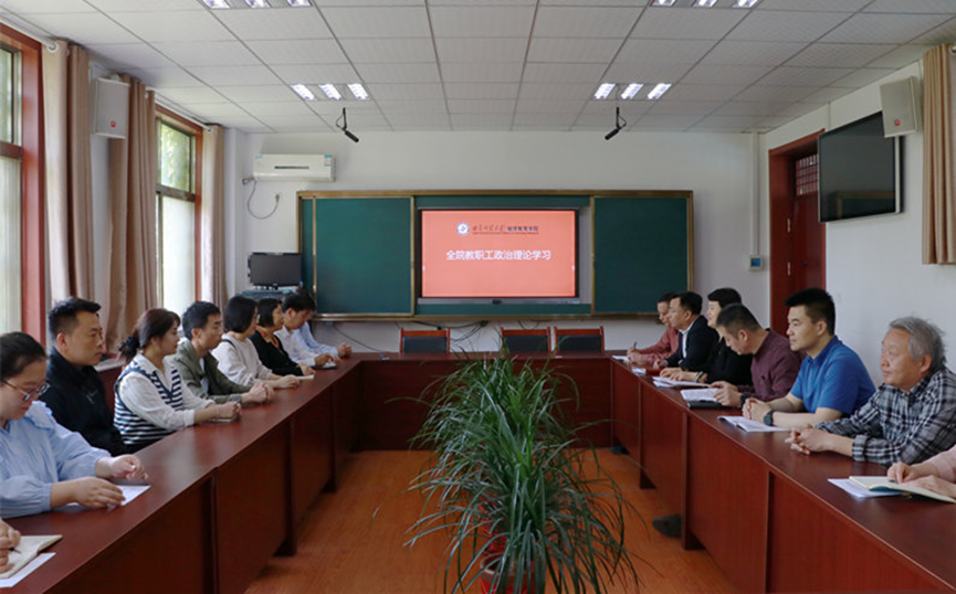 4月24日,学院在会议室组织全体教职工开展政治理论学习,学院领导班子及全体教职工参加,会议由党总支书记茌淑君主持。