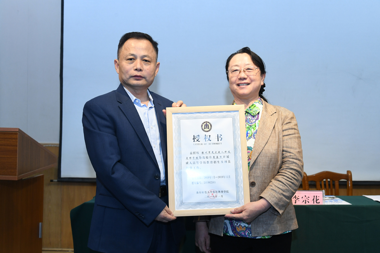 会上学院与函授站签订了2019年联合办学协议,举行了《办学授权书》授牌仪式。