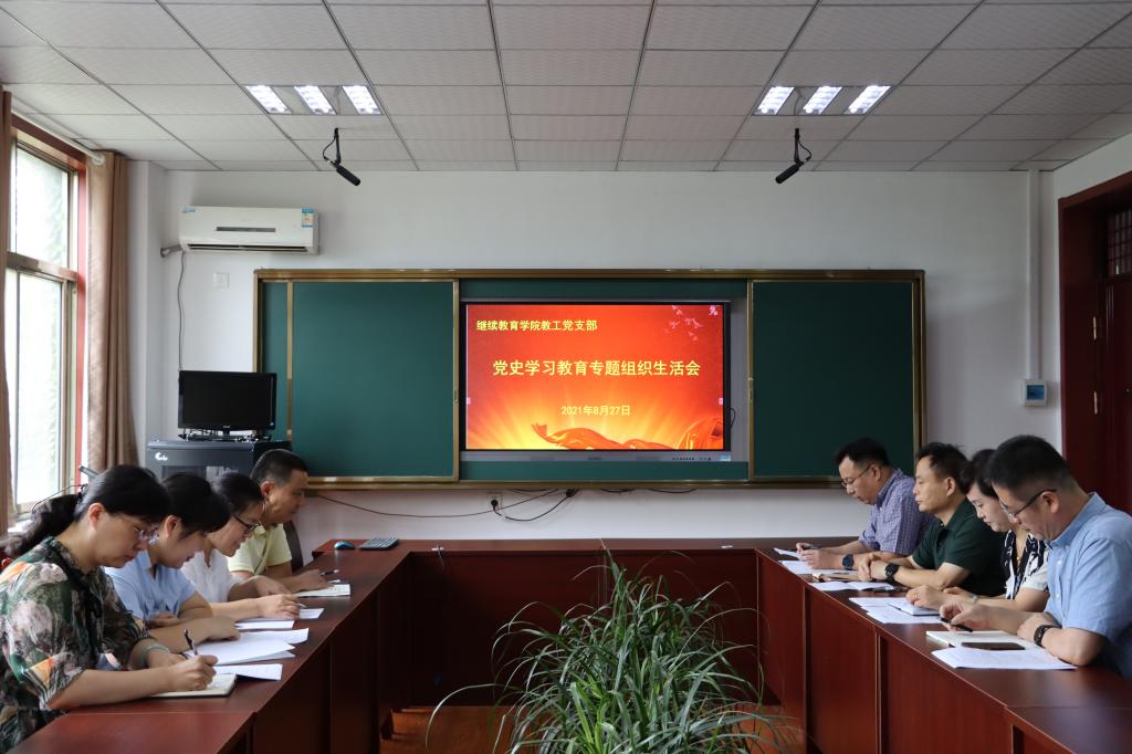 教工党支部召开党史学习教育专题组织生活会。会议由支部副书记邢春雷同志主持,全体党员参加,学院党总支书记茌淑君同志以普通党员身份参加会议。