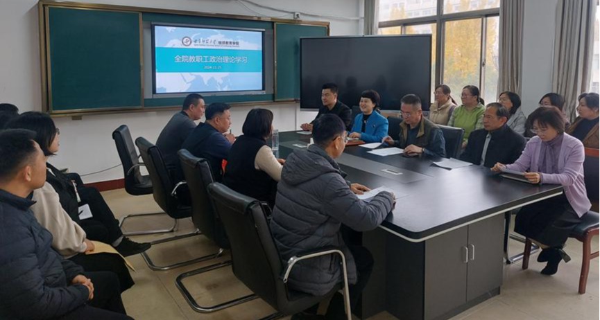 11月25日上午,学院在四楼召开全体教职工大会,开展政治理论集中学习,传达学校近期文件精神和开展2024年职称申报人员民主推荐测评工作。会议由学院党总支书记茌淑君主持。