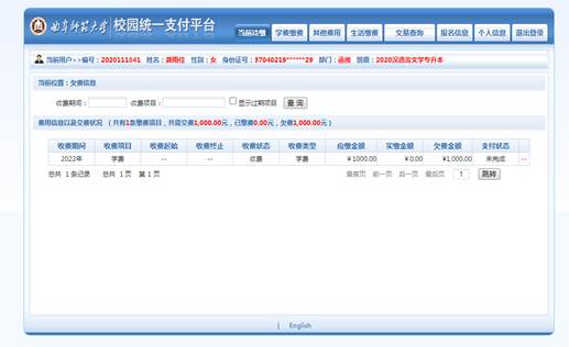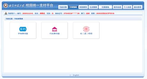 2.输入用户名、密码和验证码后进入校园统一支付平台。