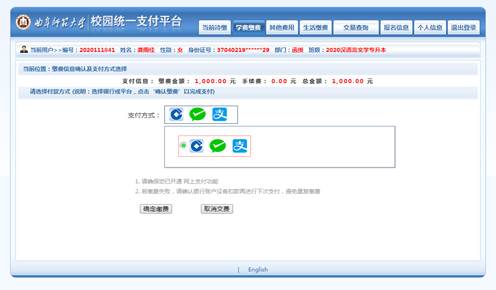 5.最后出现支付方式选择,系统暂只支持微信支付,点击“确认缴费”即可。