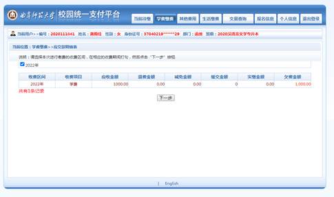 4.点击“学宿费待缴”,按照要求,点击“下一步”。