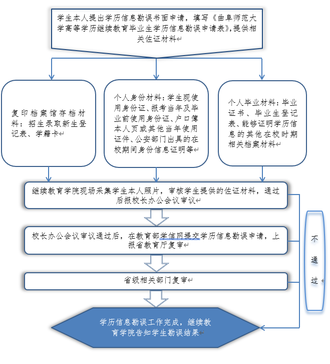 成人高等教育毕业生如学历信息有误可进行勘误,请将有关材料按照要求提交至av动漫 教务部协助进行学历勘误,具体流程如下: