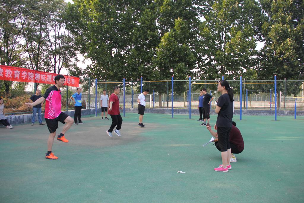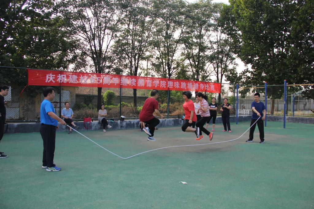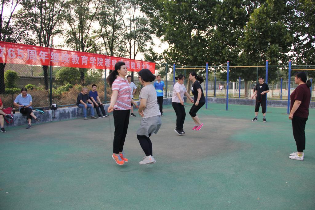 为庆祝学校建校65周年,欢庆第36个教师节,抗击新冠病毒疫情,营造健康和谐、积极向上的工作氛围,树立“健康第一”的思想,倡导“我运动我健康”的理念,进一步提升团队合作精神,提高学院教职工健身运动的热情,学院分工会于9月9日下午四点在学校西操场组织了“庆祝学校建校65周年”趣味跳绳比赛,学院全体教职工参加了比赛。