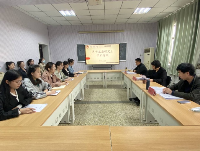 分论坛在8号教学楼201室顺利举行。担任本次论坛的评委是何爱霞教授、秦发盈副教授、孙长远副教授,2020级和2021级研究生共17人参加了此次活动。