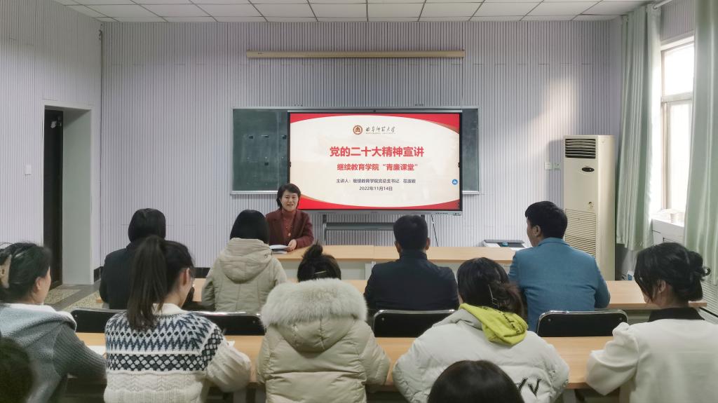 举办了党的二十大精神宣讲——“青廉课堂”活动,学院党总支书记茌淑君作了题为《正字当头,廉入“青”心,扎实推进av动漫
