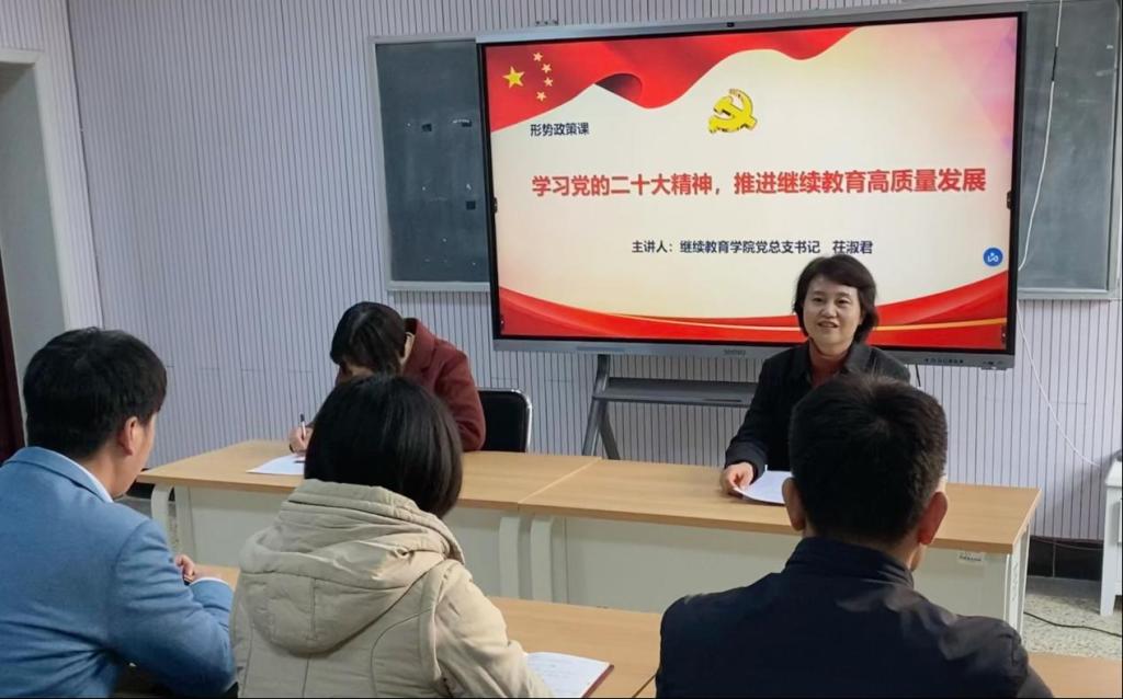 为深入学习宣传党的二十大精神,加强学院师生党性修养,11月18日下午,学院党总支书记茌淑君以“学习党的二十大精神,推进继续教育高质量发展”为题,为av动漫
