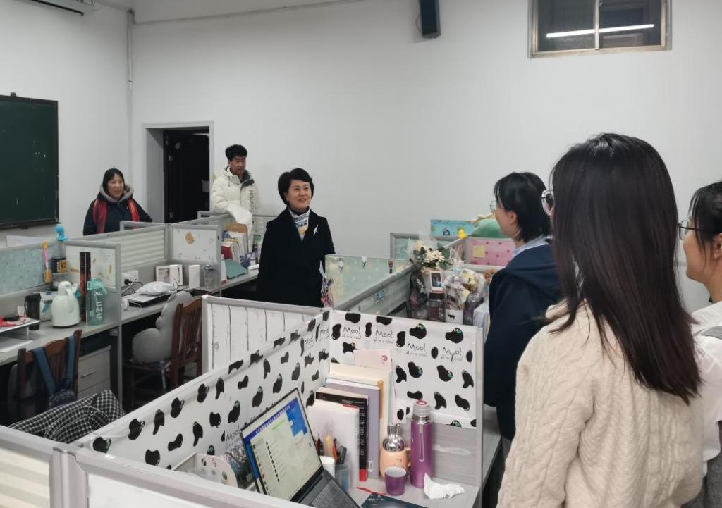 党总支书记茌淑君、职业与继续教育研究院院长何爱霞教授、研究生辅导员高小军博士一行对研究生教室和宿舍进行了走访排查。茌淑君书记深入了解学生的思想、学习以及生活状况,叮嘱同学们认真学习,做好科研,提高安全意识,注意宿舍用电等安全,严格遵守学校的各项规章制度,同学之间互帮互助、和谐相处,切实维护良好的学习、生活秩序。