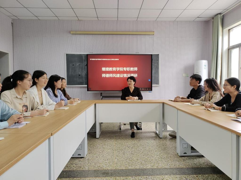 以本次调研为契机,职业与继续教育研究院将进一步深化师德师风建设工作机制,将师德师风建设要求贯穿教师管理全过程,贯穿职业生涯全过程,不断促进教师队伍思想政治素质和职业道德水平全面提升。