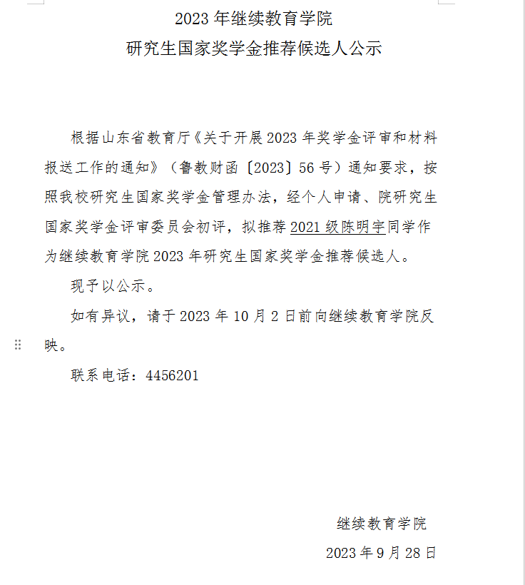 2023年av动漫 研究生国家奖学金推荐候选人公示