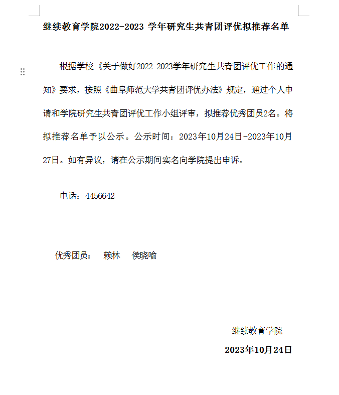 av动漫 2022-2023 学年研究生共青团评优拟推荐名单