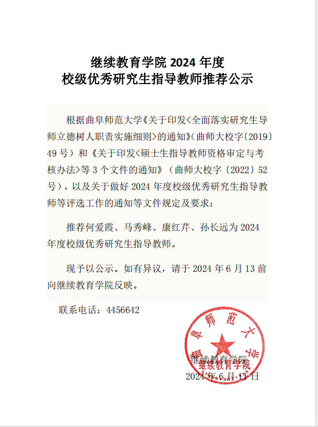 av动漫 2024年度校级优秀研究生指导教师推荐公示