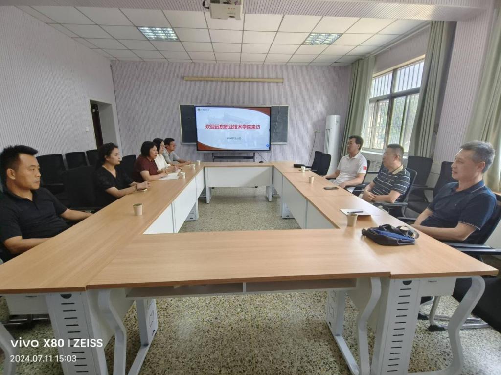 相关专业教师参加了座谈会。曲阜远东职业技术学院原党委书记马恩介绍了该校的基本情况,并希望双方能在职业教育领域开展深度交流与合作。副院长王万民也表示,在新时代背景下,高职院校应更加注重内涵建设,有针对性地提升教师队伍素质,提高教育教学质量,培养更多符合社会需求的高素质人才。何爱霞院长对曲阜远东职业技术学院两位领导来访表示热烈欢迎,并简要介绍了研究院的师资队伍构成、专业发展方向、研究生培养质量及主要科研成果。