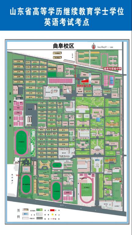 曲阜校区教学区北门进出学校,考场设置在北门进校后约100米位置。(曲师大教学区北门位于曲阜市实验中学西250米路南,高德地图://www.amap.com/place/B02190ASJV 百度地图://j.map.baidu.com/c2/ZP2 )如下图所示: