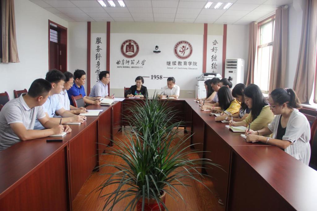会议由邢春雷副院长主持,邢春雷首先阐明了本次会议目的:进一步加强对曲阜项目部的规范管理,更好地拓展培训业务。曲阜项目部负责人吕桐月介绍了山东一创众望教育科技有限公司整体组织架构、业务范围及分布区域、团队成员、公司近几年业绩等,“一创”的9名职员分别汇报了各自业务开展情况。马秀峰院长在讲话指出,学院将进一步加强对“一创”的关心与支持,重点突出校企双方的“融合、支持、协同”发展,保证双方更好的协同推进。茌淑君书记随后强调了培训工作一定要强化服务意识,注重细节,做好服务管理,加强意识形态管控。